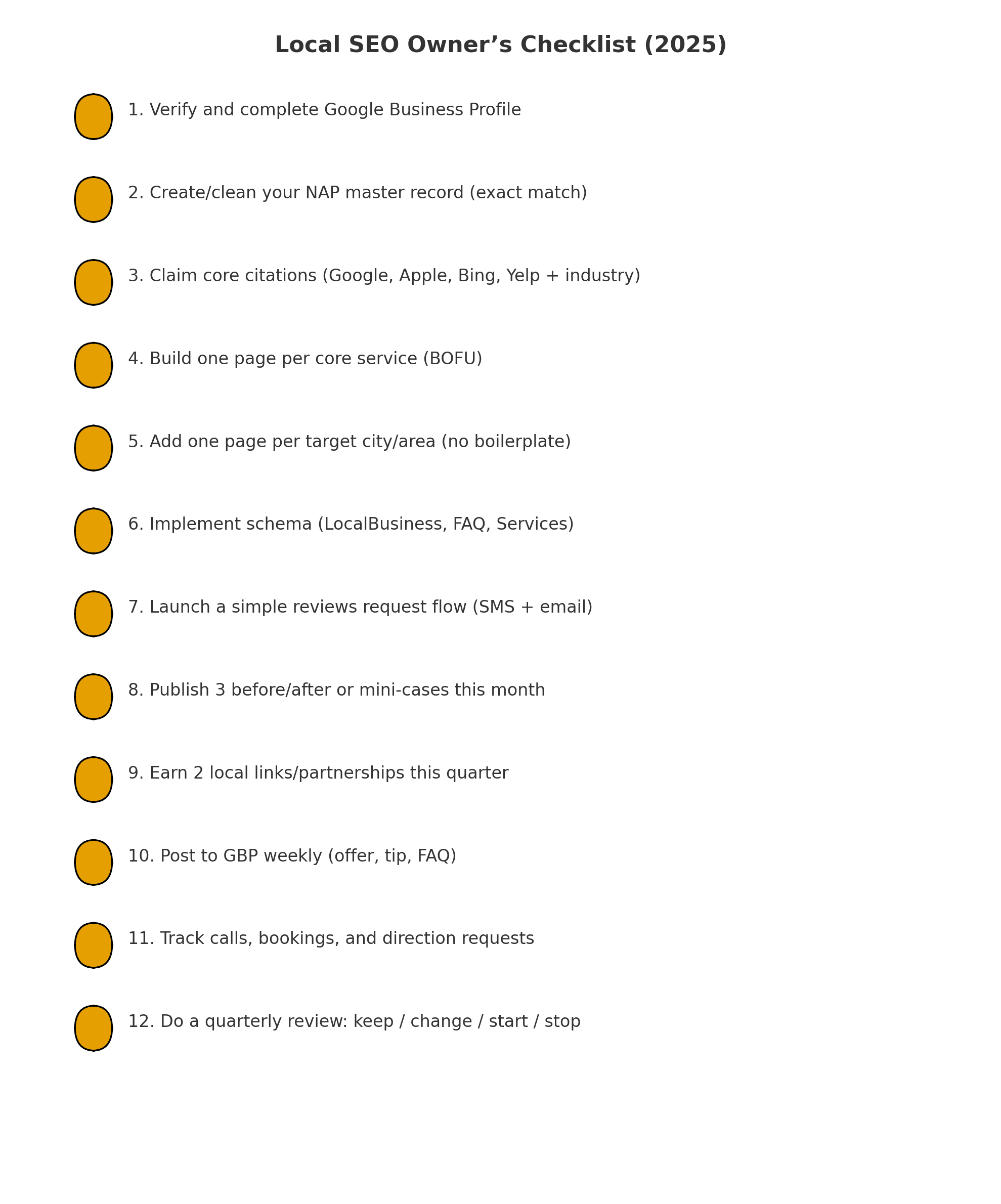 Your name, address, and phone must match everywhere. Clean accuracy beats long lists of weak directories.